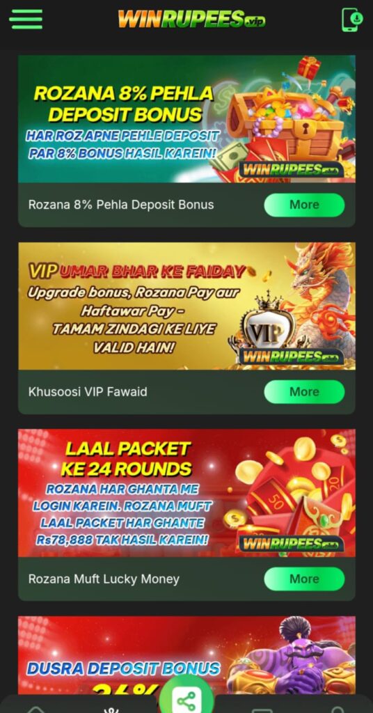 Winner Rupees is an online real-money gaming platform where users can play different games and earn Pakistani rupees (PKR). The app offers a variety of games such as slots, card games, spin wheels, and mini-games. Players can earn money by winning games, completing daily tasks, or inviting friends through a referral system. Any winnings can usually be withdrawn using local payment methods like JazzCash or EasyPaisa. online earning platform is designed for entertainment and earning, but since it involves real money, users should play responsibly and understand that both winning and losing are possible.